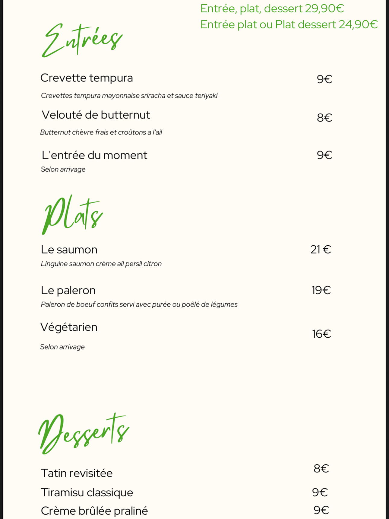 Chaque semaine, découvrez une ardoise entièrement renouvelée, imaginée par Charles Des plats généreux, des produits de saison, des inspirations gourmandes… Rien n’est figé, tout évolue, au fil des envies et des arrivages 🍽️