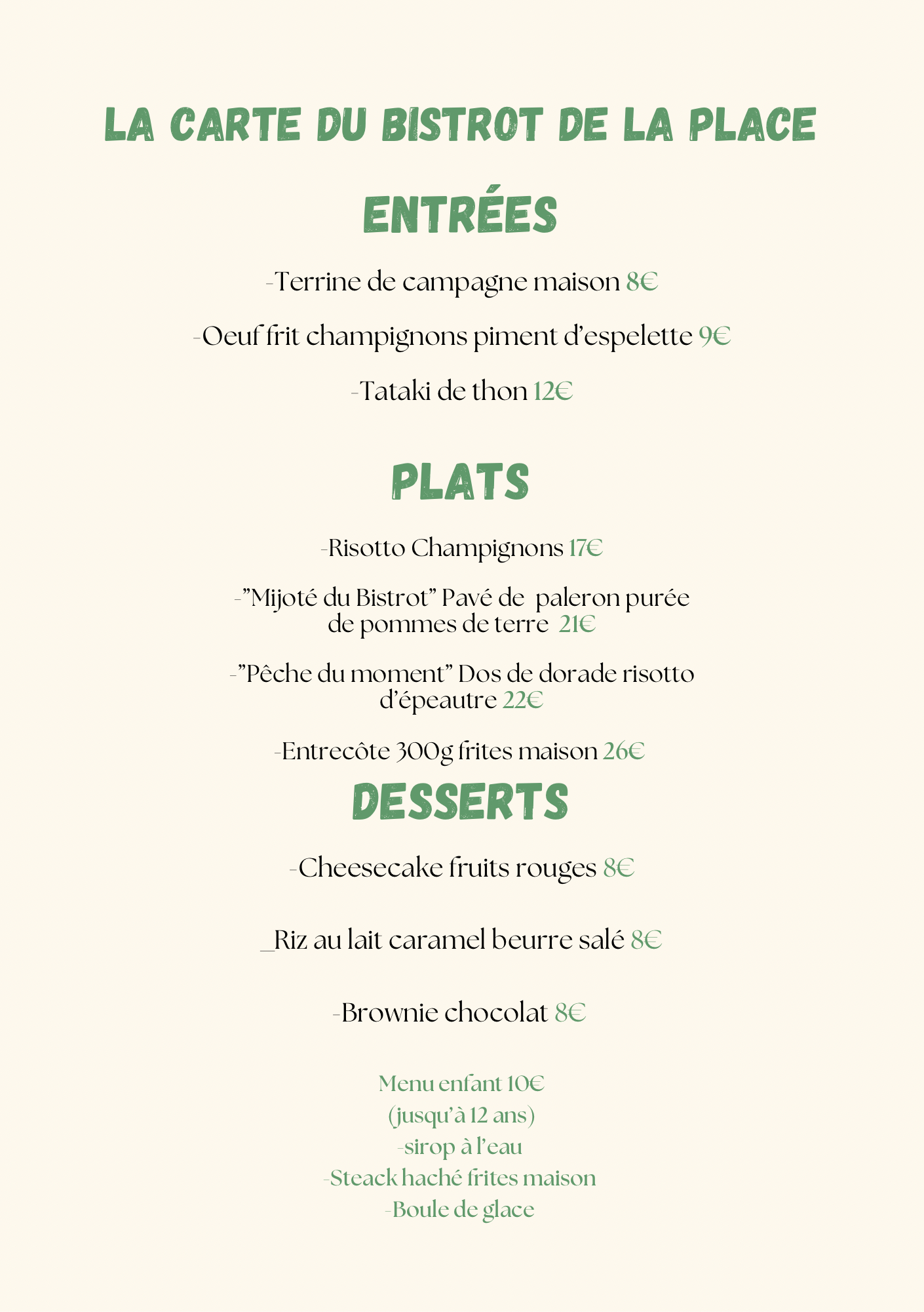 Notre carte évolue régulièrement au fil des saisons et des arrivages, afin de vous proposer des plats toujours savoureux, variés et en accord avec les meilleurs produits du moment. Que vous veniez pour un déjeuner entre amis, un dîner en famille ou un repas sur le pouce, vous trouverez toujours au Bistrot de la Place une cuisine sincère, gourmande et pleine de caractère.